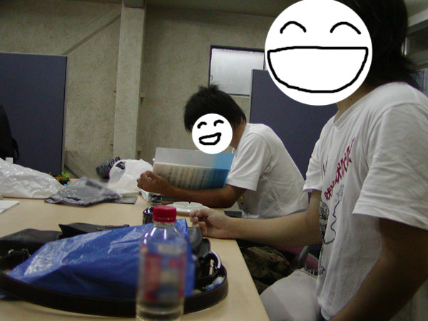 会議中…みんな真剣。の中、イチとたくちゃんは家族写真みたくなってるw